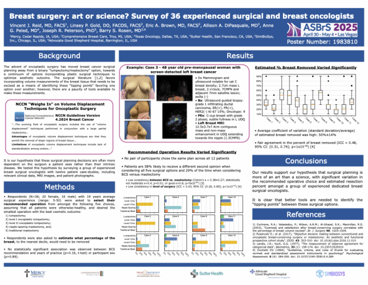 A survey of 36 oncologists revealed decision variability. Only 40% agreed on plans, with 70% concordance on lumpectomy versus mastectomy. Oncoplastic surgery experts with 20 years of experience suggest standardization, possibly with AI.