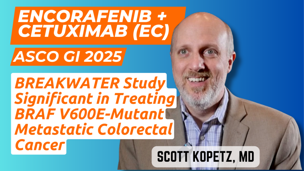 The latest findings from the BREAKWATER study, a phase 3 clinical trial, have shown significant strides in improving treatment outcomes for patients with BRAF V600E-mutant metastatic colorectal cancer (mCRC). Presented by Scott Kopetz, MD, of MD Anderson Cancer Center, this study focused on the combination of encorafenib and cetuximab (EC) with FOLFOX chemotherapy versus standard of care (SOC) in the first-line setting.